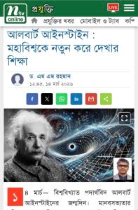 আলবার্ট আইনস্টাইন: মহাবিশ্বকে নতুন করে দেখার শিক্ষা, ntv online, ১৪ মার্চ ২০২৬
